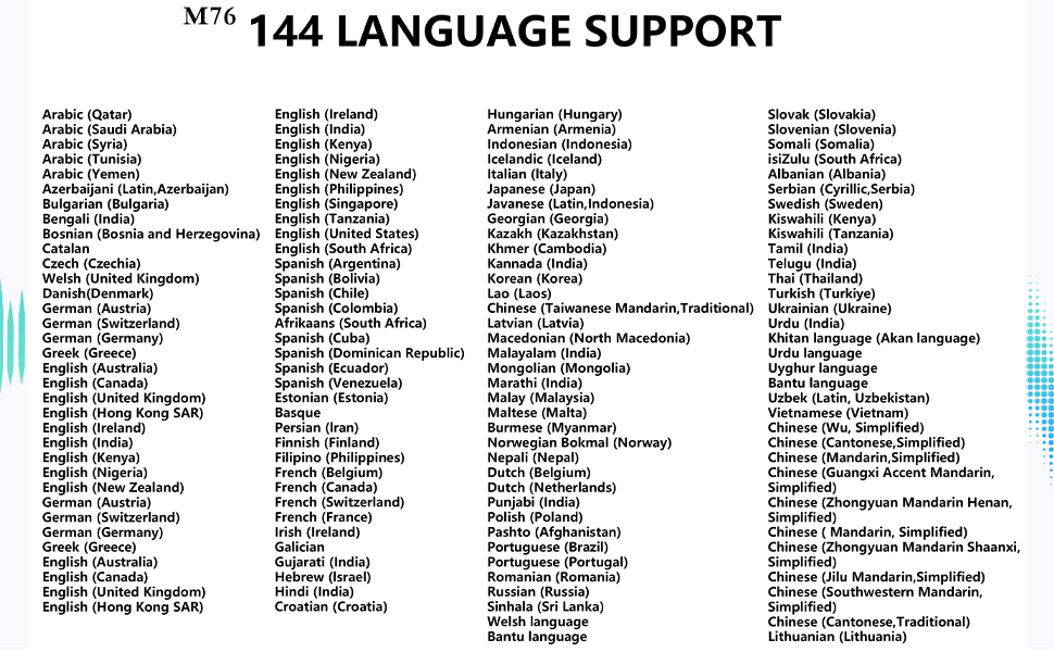 - Revolutionary Translation Technology for Barrier-Free Communication: Featuring natural interpretation technology and AI, the M76 offers an immediate and smooth translation experience, suitable for one-on-one conversations, meetings, speeches, and various other scenarios.